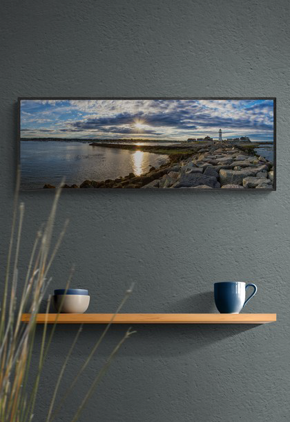 In The Clouds: This work displays rich clouds in a strong sunset at Scituate Lighthouse. This picturesque sunset scene brings a wonderful sense of calm. “Coordinates: N 42° 12′ 17.1″, W 70° 42′ 57.0″ Scituate Light at Cedar Point, Scituate Harbor in Massachusetts. The nearest city is Scituate, MA. The station was first established in 1811. The current lighthouse was first lit in 1811.”