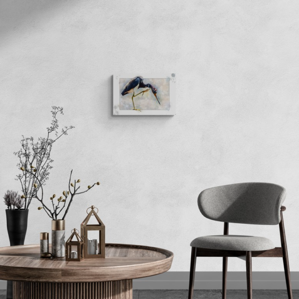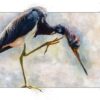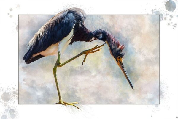 Insatiable Itch: [captured image in Galveston, TX] The Little Blue Heron is found among the marshes and estuaries of the South East. They are often camouflaged by the emergent vegetation along the shallow water’s edge. This small Heron initially starts off with white plumage the first year of life and transitions into dark moody blues and purples in adulthood. Tidbit: A row of built-in ”teeth” along the middle toe that serves as a grooming comb;; they use this handy tool to scratch their head, neck, and throat. – The Cornell Lab AllAboutBirds.org
